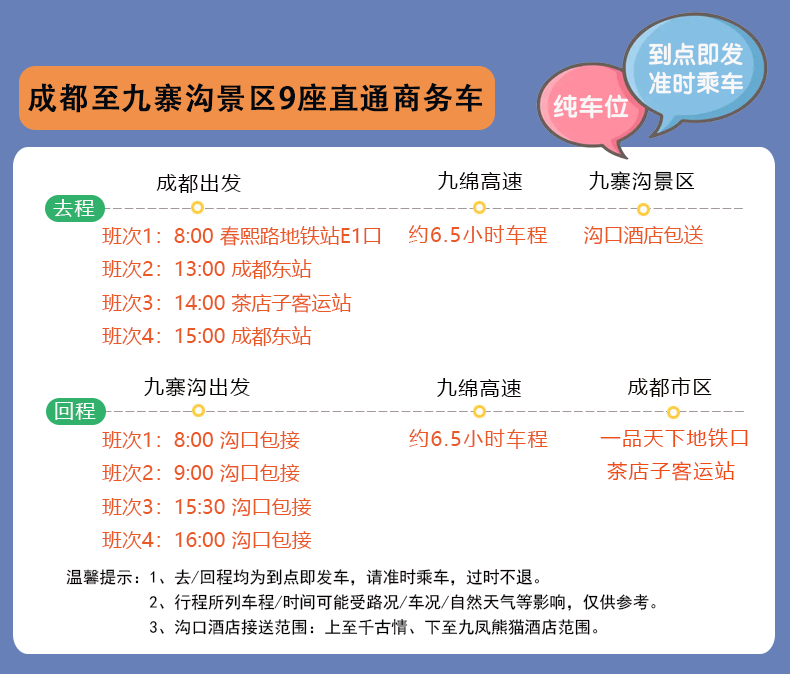 1、去/回程均为到点即发车,请准时乘车,过时不退。