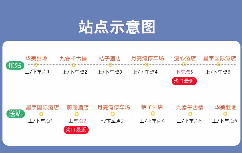 3、行程所列站点和上车时间准时发车,请提前候车,过时不候。