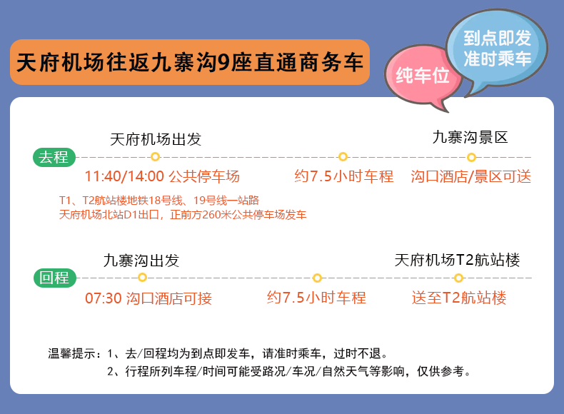 温馨提示:1、去/回程均为到点即发车,请准时乘车,过时不退。