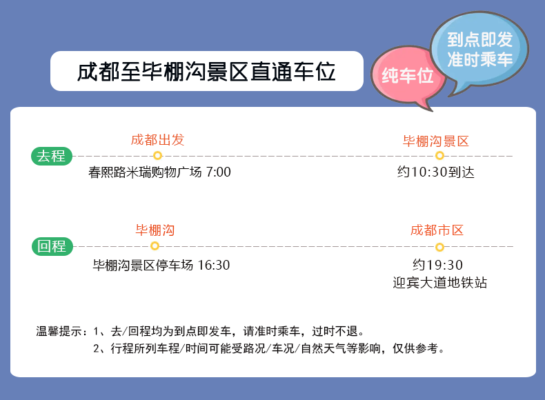 7:00成都-16:30毕棚沟(商务车)(当日往返)