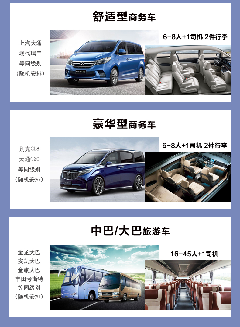 1、涉及接送站(机)的,请在下单时在备注栏写明到站(飞机)班次、时间;