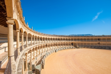 龙达被称为现代式斗牛的发源地,龙达斗牛场是西班牙最古老的斗牛场之一,建成于1785年,共花费了6年时间,也是斗牛士们朝圣的地方,西班牙现今的斗牛方式就是在这座斗牛场诞生的。这座建于1785年的圆形斗牛场可容纳5000名观众,并列着136根托斯卡纳式厚重石柱,黄色的柱廊和金黄色的沙场互相辉映,可以想象场面的热闹与惊心动魄。为了维护这座“古迹”,仅在特殊的节日才会于此举办斗牛赛。