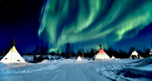 当夜幕降临,我们会到您下榻的酒店接您,带您到我们独有的特色极光庄园守候极光,庄园里有极地木屋,土著帐篷,设施完善,温暖舒适,可听歌看影视,喝热茶咖啡,享用餐点,还有洁净舒适的现代卫生间设备;当期待已久的极光终于飞舞在夜空中时,我们专业的摄影导游会为您迅速留下难忘的美妙影像。