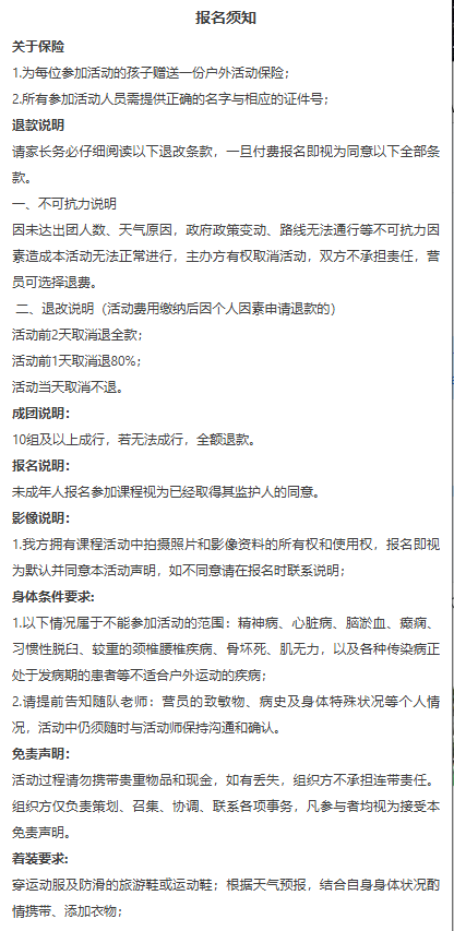 2.请提前告知随队老师:营员的致敏物、病史及身体特殊状况等个人情况,活动中仍须随时与活动师保持沟通和确认。
