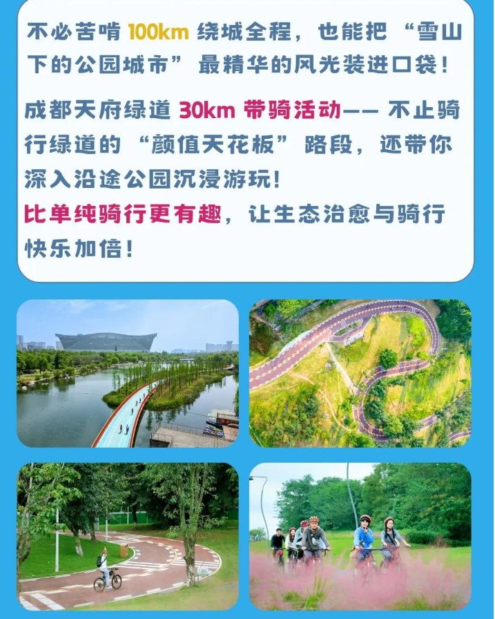 成都天府绿道 30km 带骑活动-- 不止骑行绿道的“颜值天花板”路段,还带你深入沿途公园沉浸游玩!