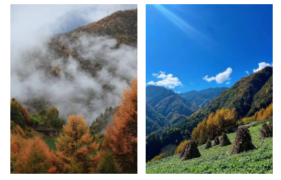 彩林环绕的高山牧场,漫山遍野的黄叶红林,人在画中游,小众彩林路线,世外桃源,油画仙境,拾秋之旅。
