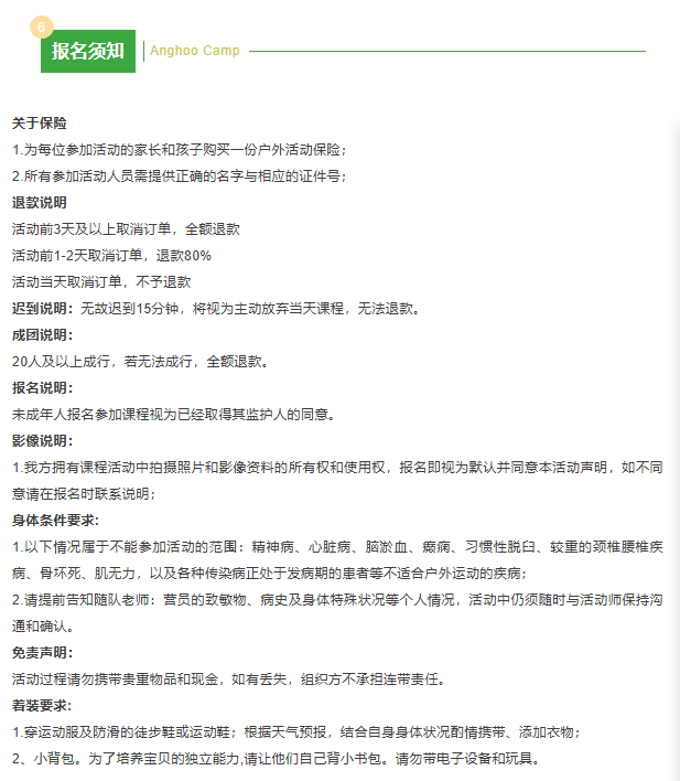 2.请提前告知随队老师:营员的致敏物、病史及身体特殊状况等个人情况,活动中仍须随时与活动师保持沟通和确认。