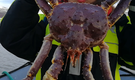 在希尔克内斯准备出发,跟随当地的探险向导,前往位于峡湾的传统渔夫农场,换上专业的保暖服和装备后。 出海来到巴伦支海上进入峡湾海面(春夏秋季节将乘坐橡皮艇出海,冬季海面冰封,则乘坐雪地摩托雪橇穿越冰封河面),抵达捕捞海域后观看当地渔夫的收笼过程,专业的渔夫事先在捕蟹的水域下了网,并把蟹喜欢的食物做了诱饵,我们可以亲自动手体验拉网过程。冬季则凿开峡湾上的冰层,拉网取出捕捞的帝王蟹,全体与捕捞上的帝王蟹合影留念,随后开始美味帝王蟹大餐。