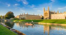 14:30 抵达英国知名学府【剑桥】(游览时间约 3.5 小时),徐志摩的《再别康桥》就是描述剑桥的, 学院古朴的建筑环起成片的草坪,蜿蜒的剑河贯穿这座大学城。您可以偷得浮生体验剑河撑篙 的【剑桥游船】,也可徒步穿梭于各学院感受文化氛围。接着您可以自行游览,为您推荐(外 观):又大又美的【国王学院】,哥特式建筑十分宏伟壮观。名气与财力兼得的【三一学院】 门口有一颗苹果树,据说是当年砸中牛顿的苹果树的后代。横跨剑河之上有名的两座桥,牛顿 的【数学桥】,以及连接圣约翰学院的【叹息桥】。